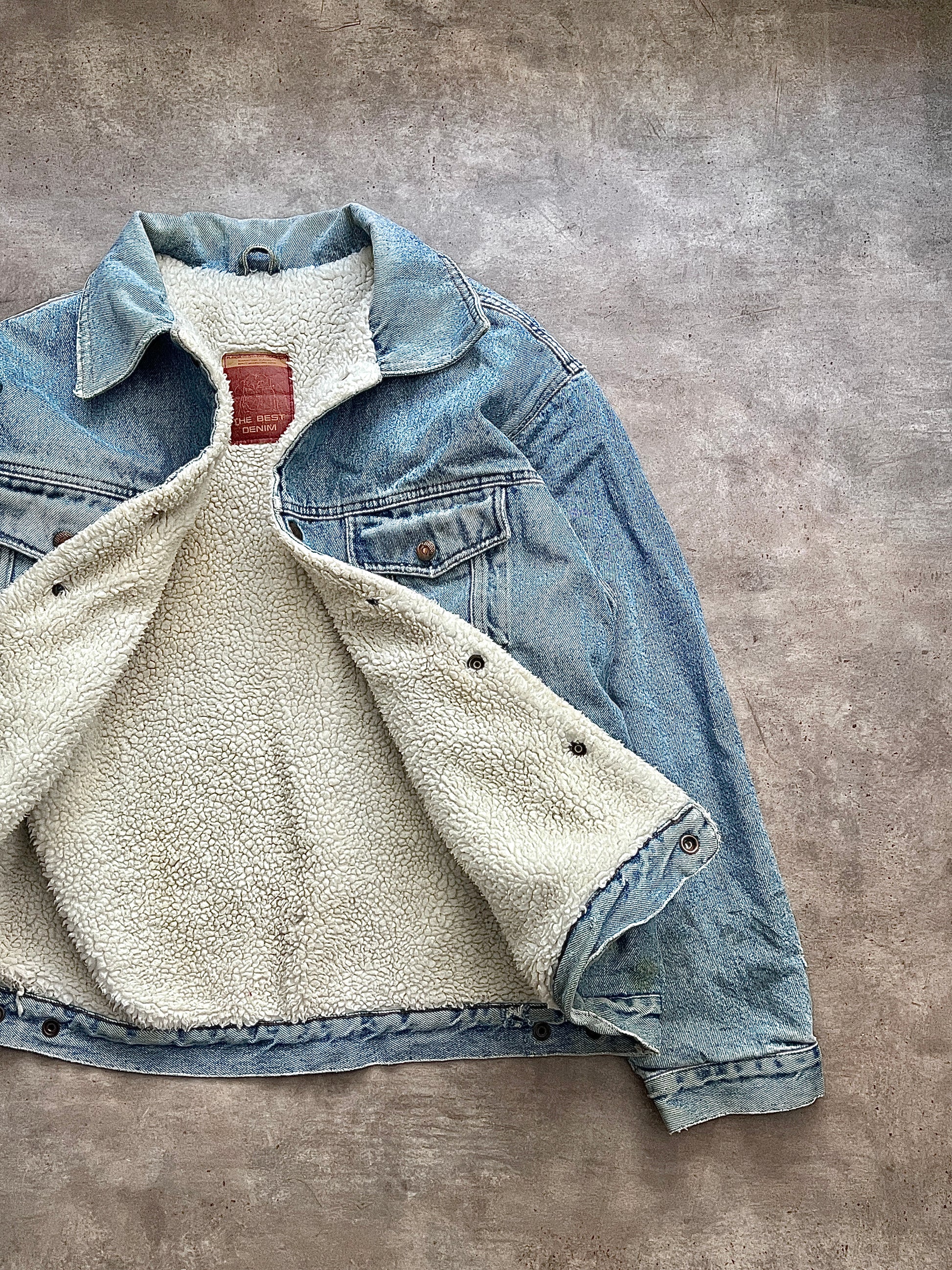 Clásica jacket de mezcilla aborregada, viene gruesa y cálida.