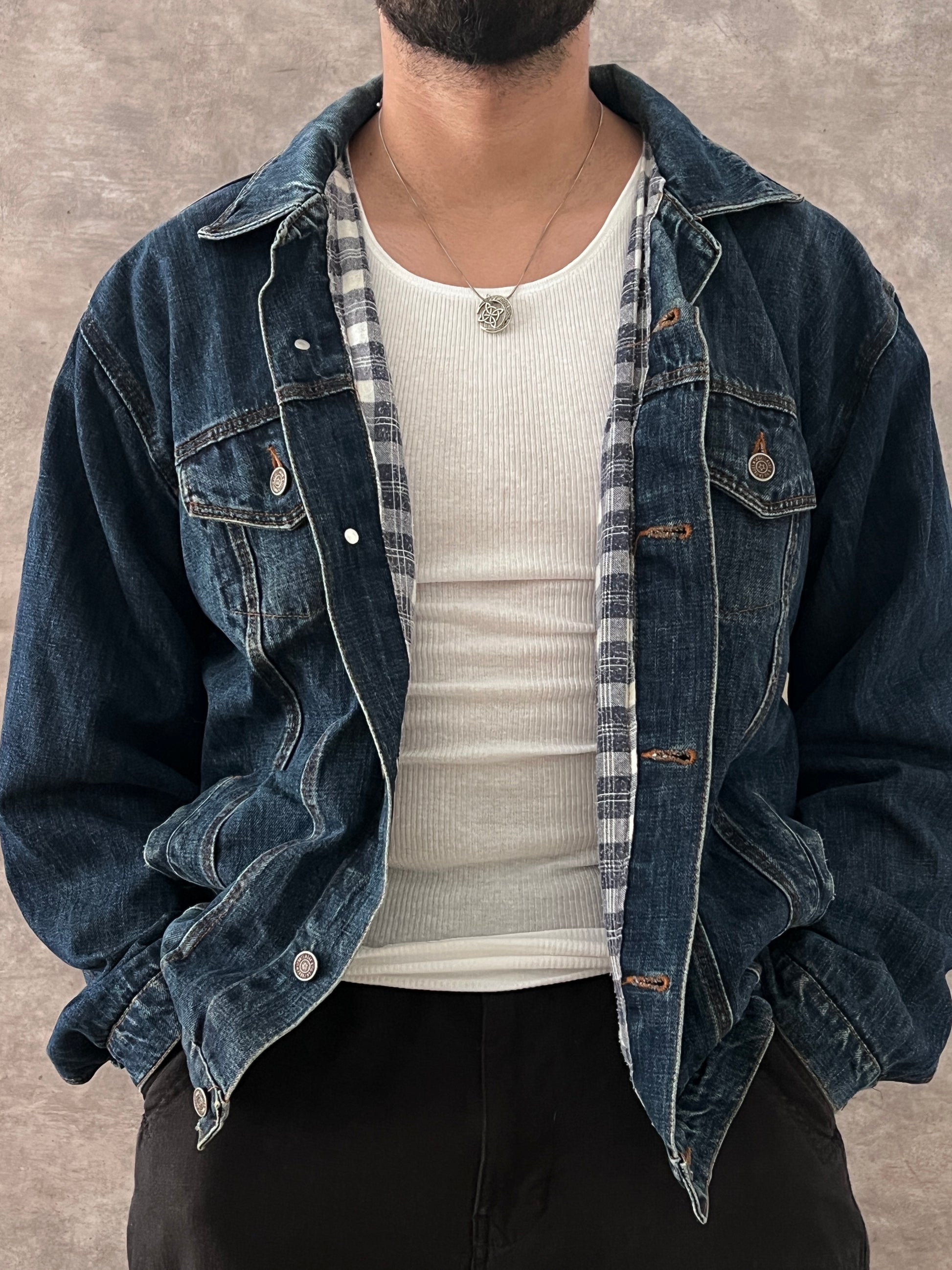 Jacket de mezcilla vintage, interior en franela, ligeros desgaste