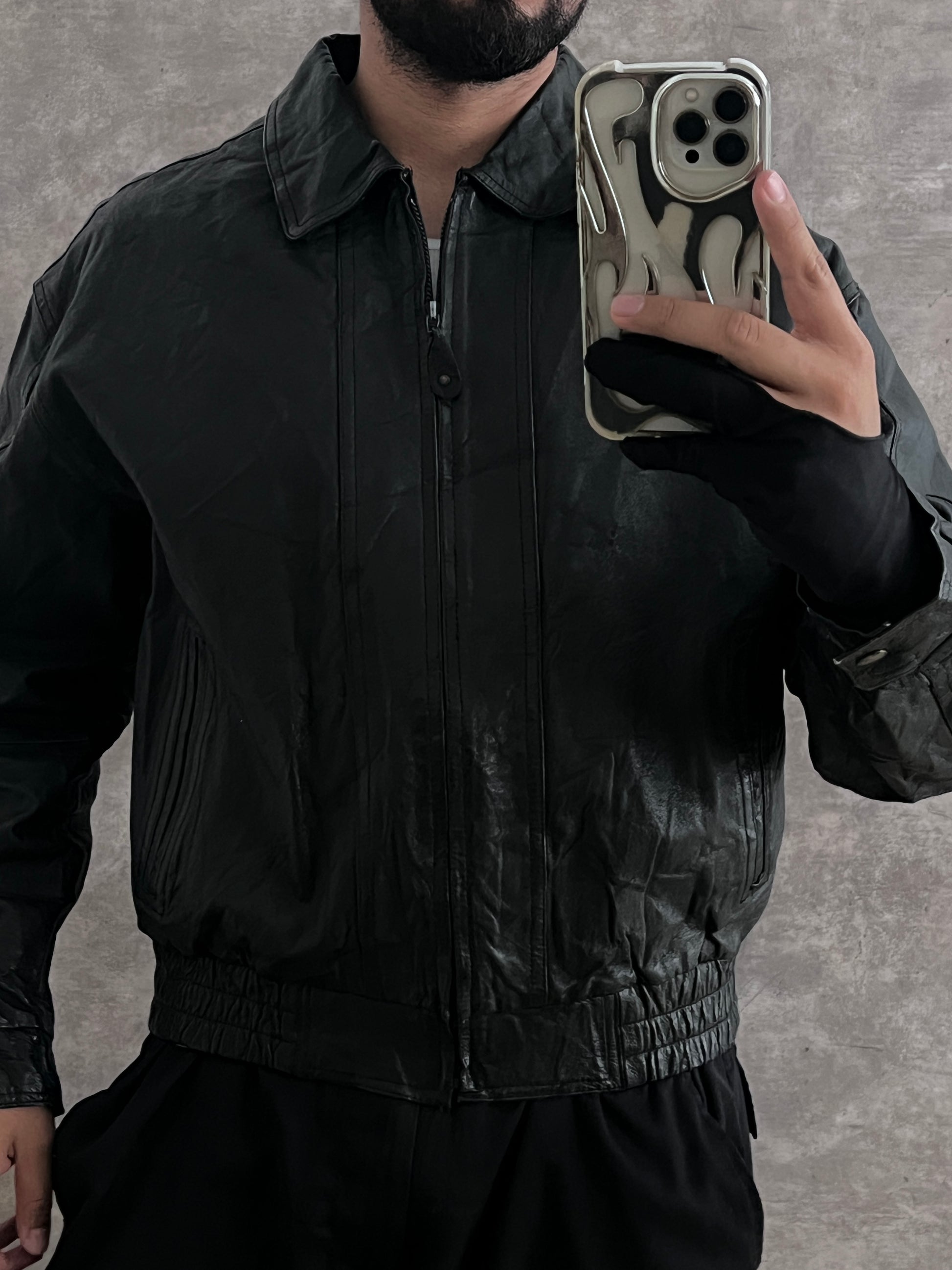 Black Bomber Leather Jacket (L)