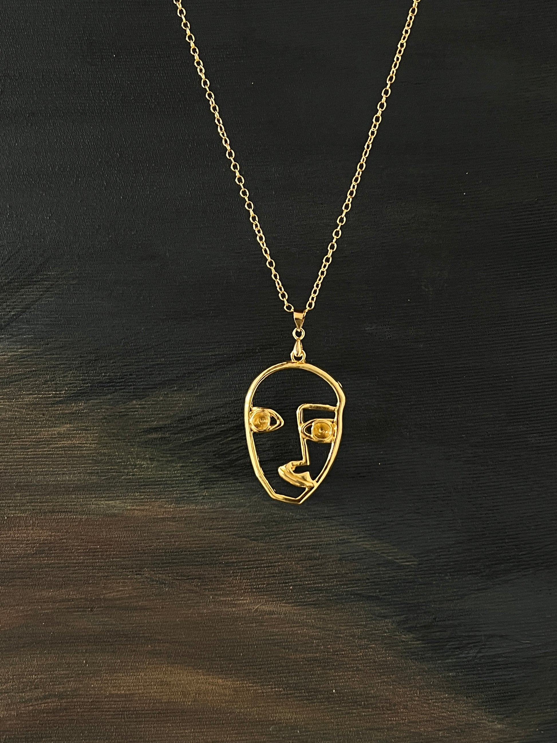 Golden face necklace