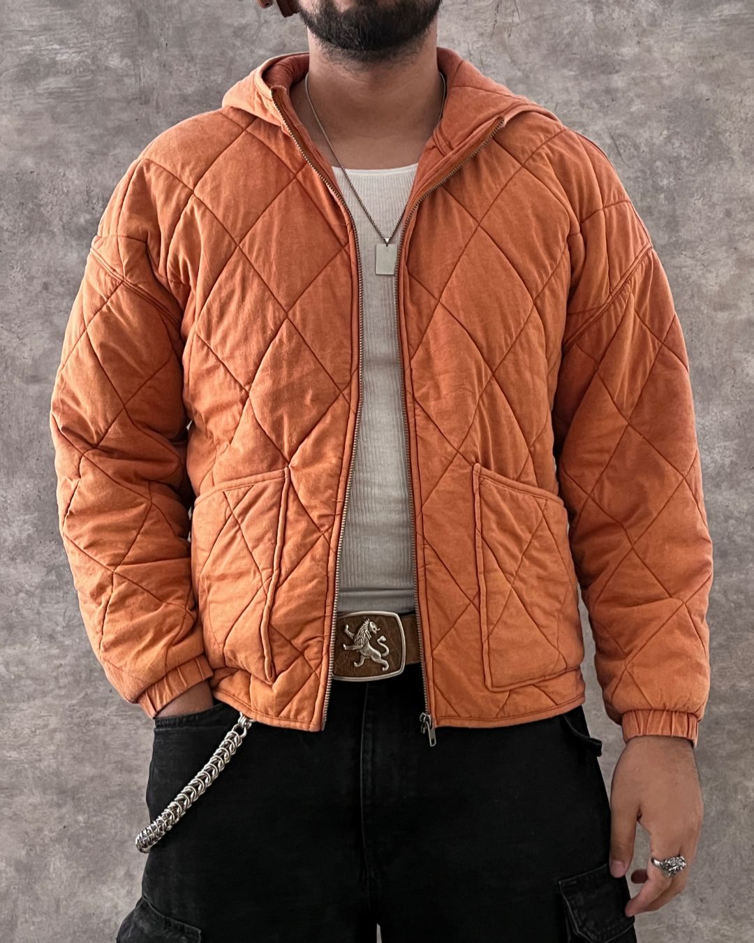Chamarra acolchonada ligera con capucha, ligeros signos de uso. Boxy Fit.
