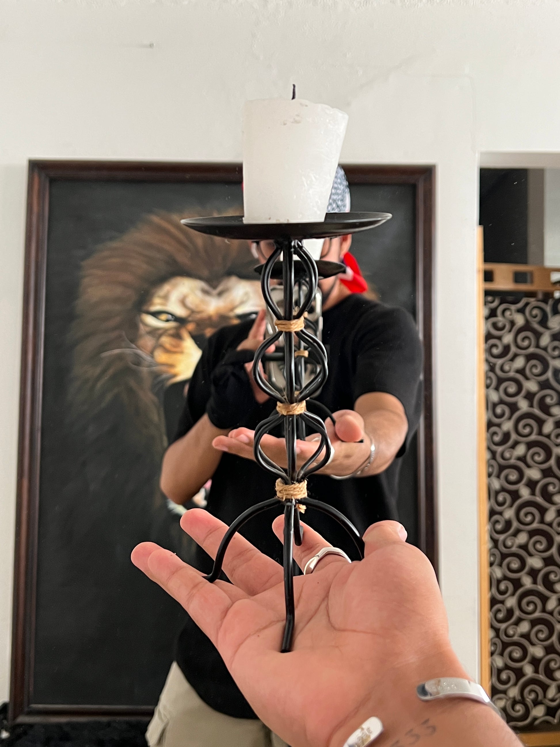 Base helicoidal metalico, trae punta para colocar vela;)