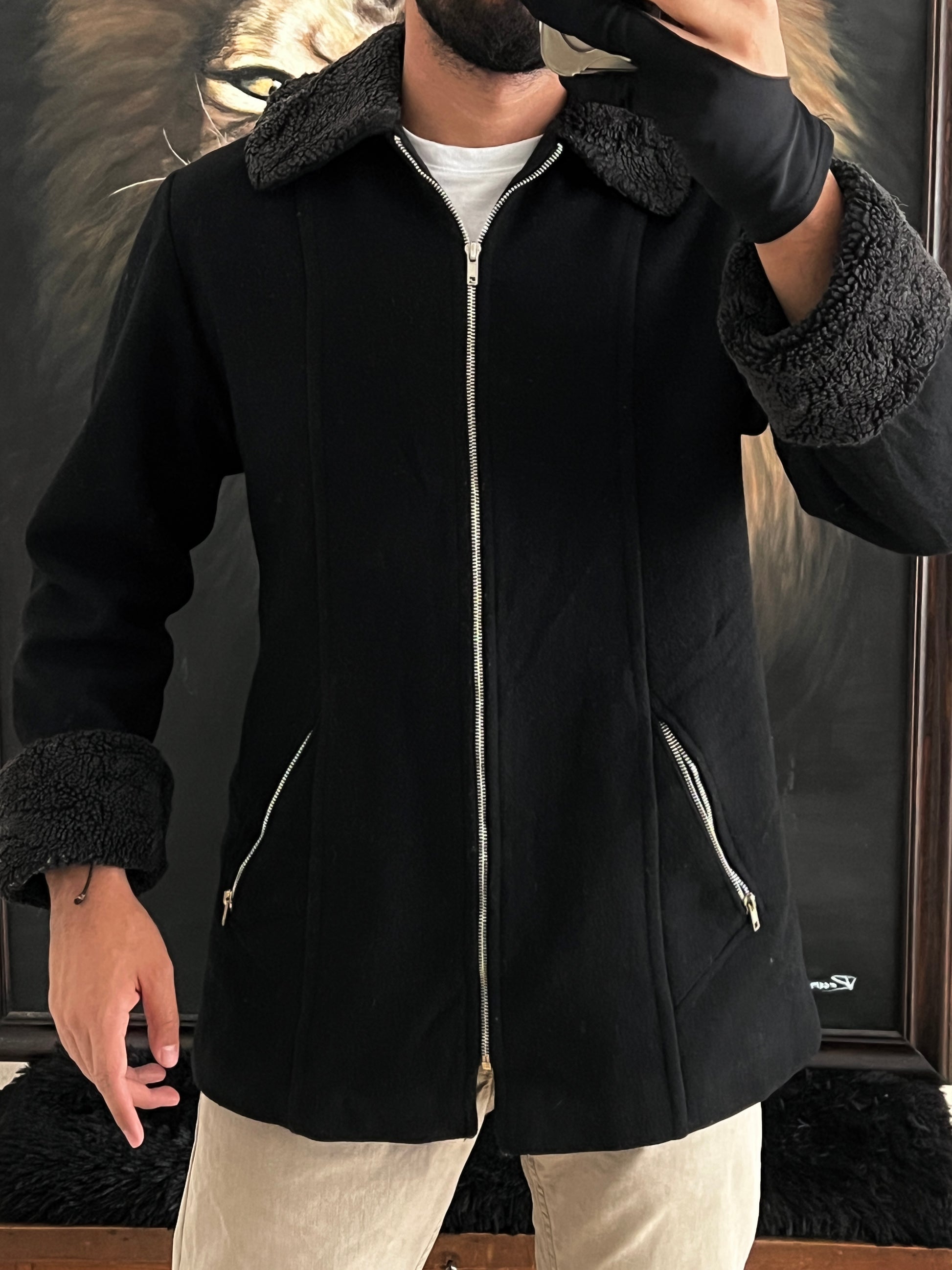 Abrigo talla chica de lana de alta calidad 🤌 Cuello y mangas aborregadas 😼 selección especial